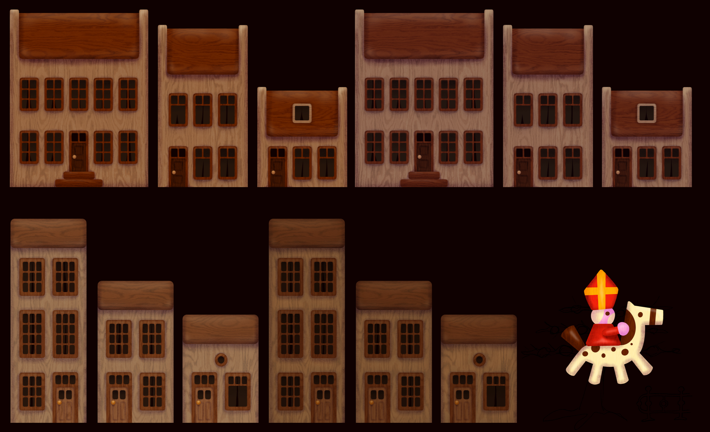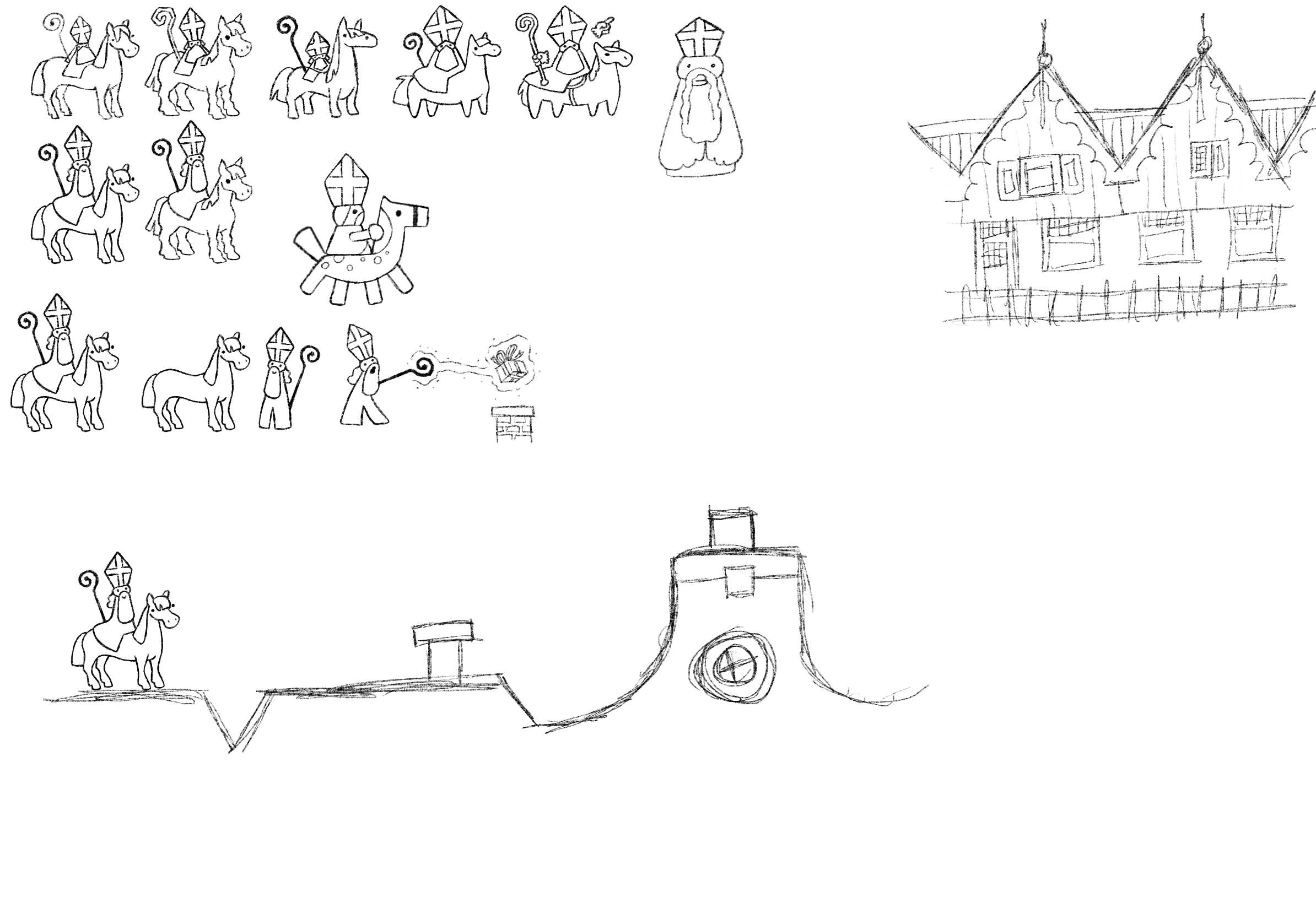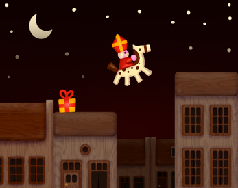 Mijn doel was om helemaal zelf een 2D platformertje te maken. Het idee is dat Sinterklaas nog een speciale bezorgronde moet doen op Pakjesavond voor de kinderen die op 5 december geboren worden en dus nog niet op de bezorglijst stonden. Ik wilde een soort houten speelhuis art stijl gebruiken met speelgoed-texturen en elementen.